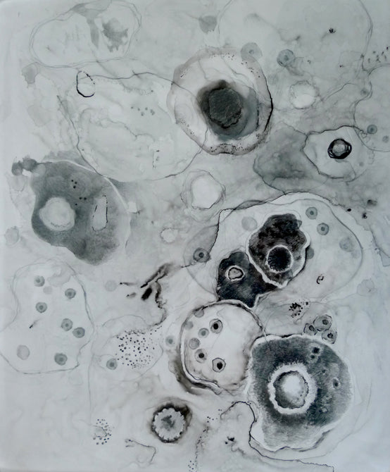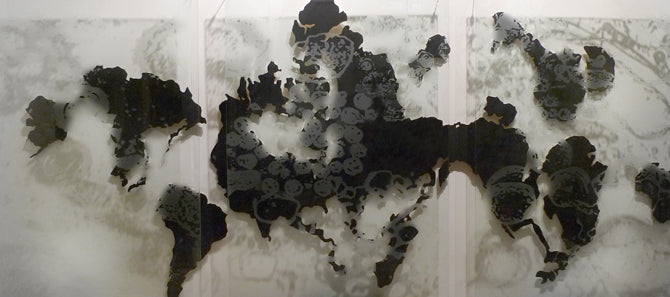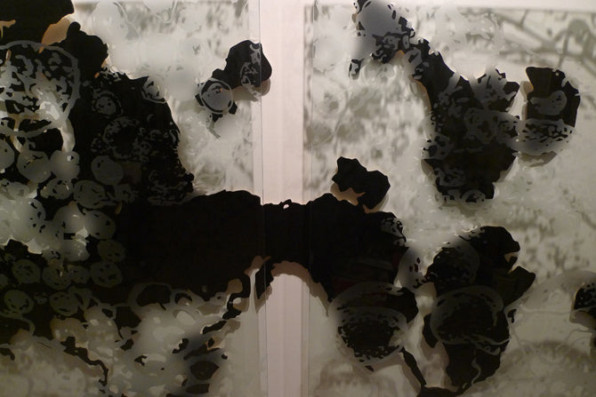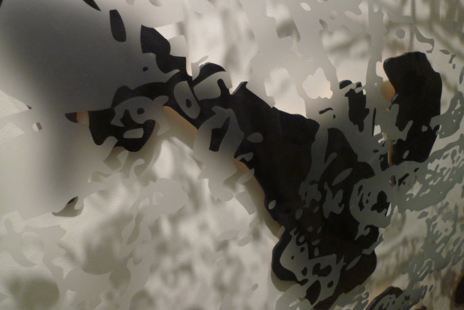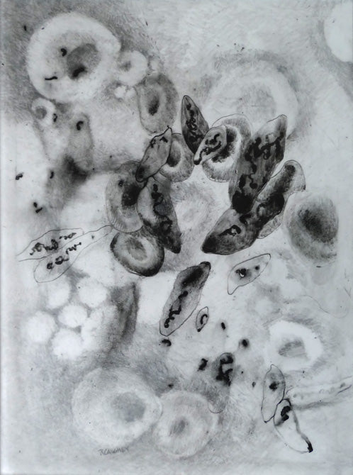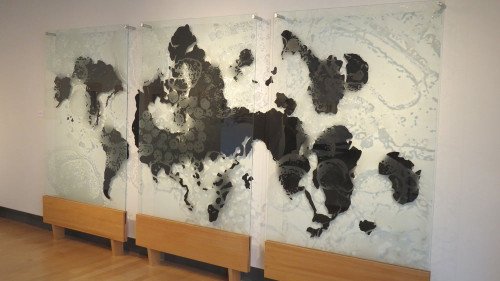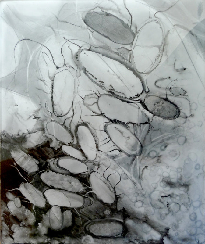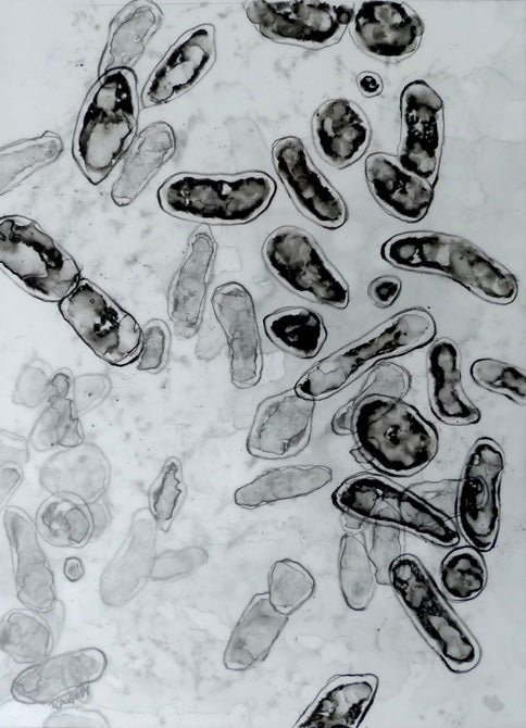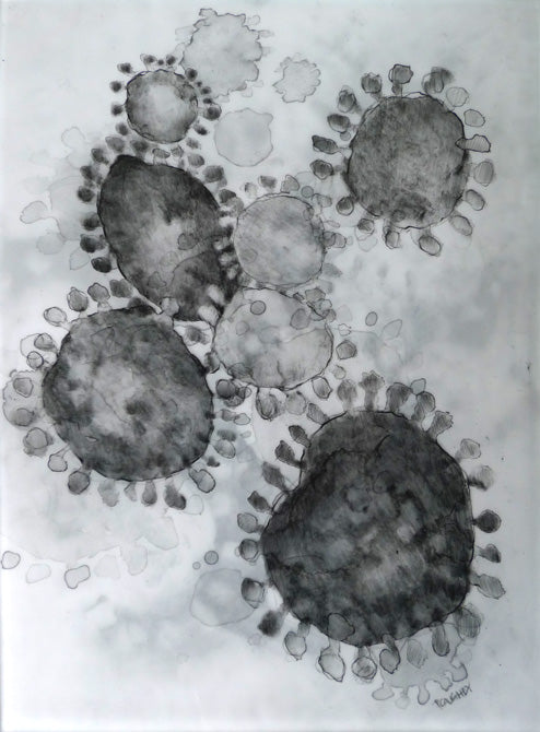 This exhibition combines art and science, abstraction and realism, light and shadow in an attempt to express how I view the invisible microbe and its migration, greatly aided by mankind. I am indebted to the Rocky Mountain Laboratories of Hamilton, Montana, a level IV facility, for sharing their electron microscopic images of pathogens with me, many of which have inspired this body of work.