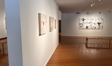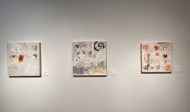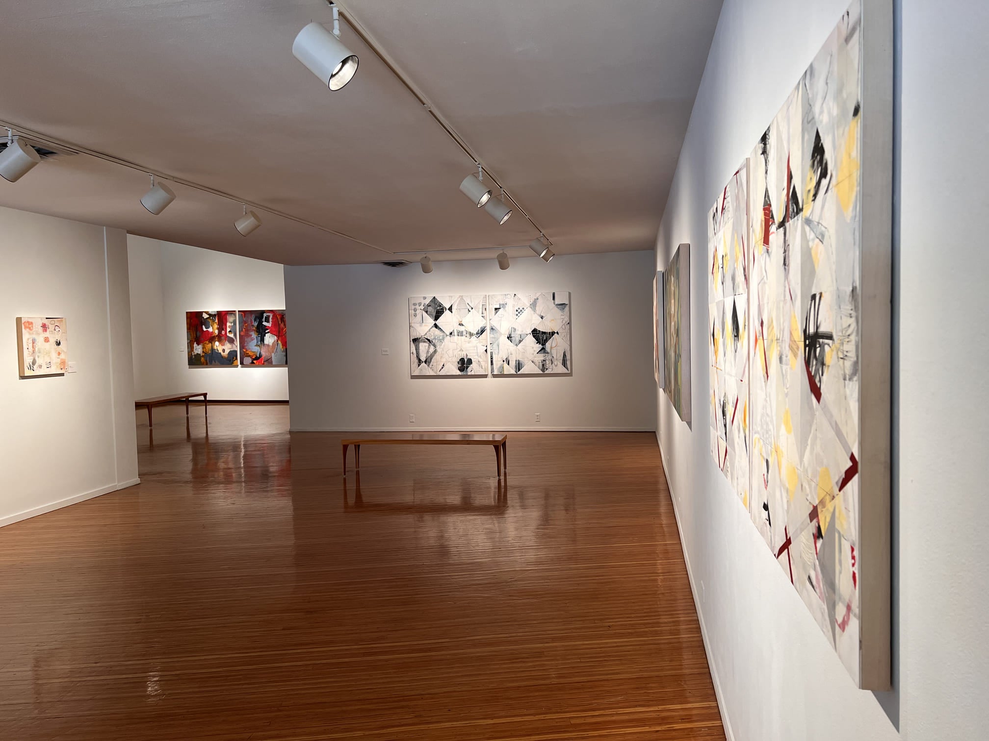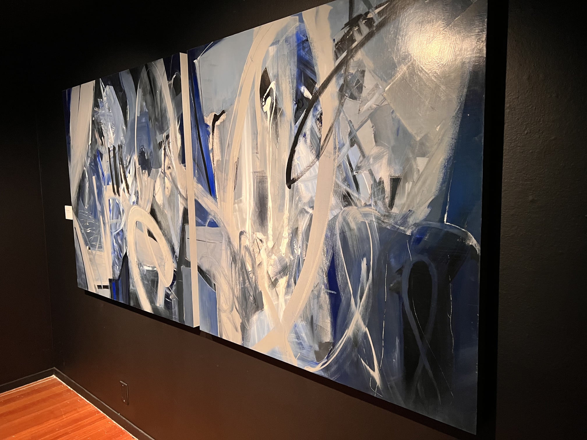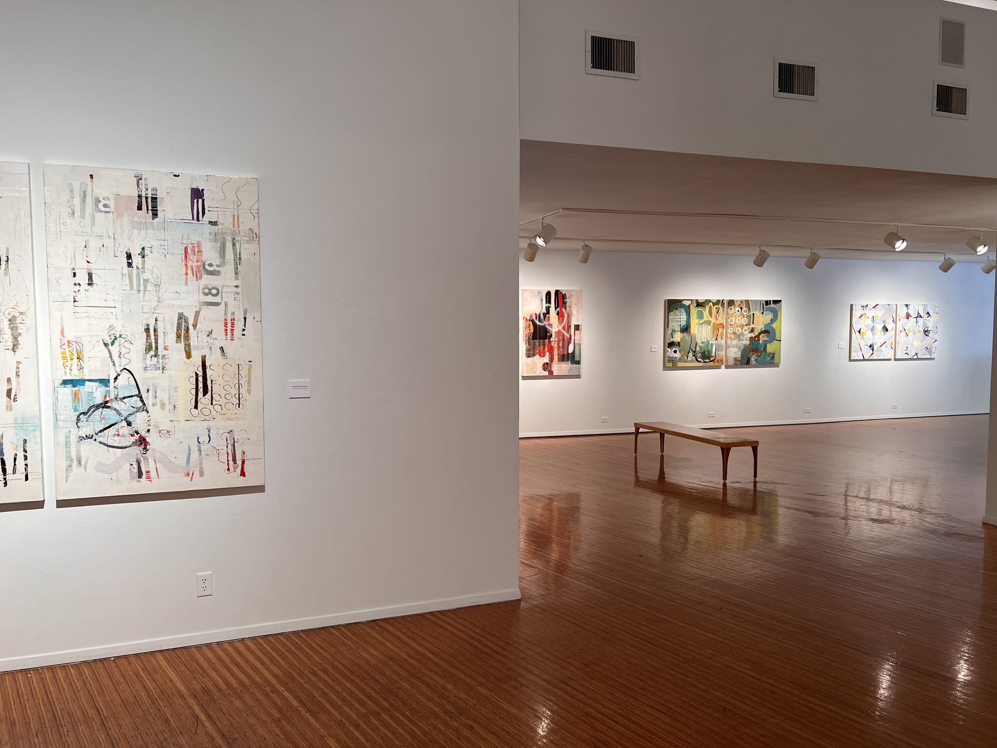The pandemic created great uncertainty as well as new opportunities. Art for me has become highly experimental and a way to explore cause and effect. The contrasts of chaos and order are constant, and they battle until one wins. Rampant black and white marks are tamed by a layer of solid pink in Undercurrent, whereas energetic looping gestures sporadically skip across four panels in Continuity. My visual language results from a spirit that does not rest or find quiet easily. It is often unsettled and seeks peace amidst calamities. Bits and pieces of the world fray and border on collapse. The birth of two beautiful grandchildren, our loving family, a ripening fig tree and chirping quail keep me balanced in a joyous place. The back and forth, chaos and calm, structure and surprise lead me to this place where life itself is Unforeseen.