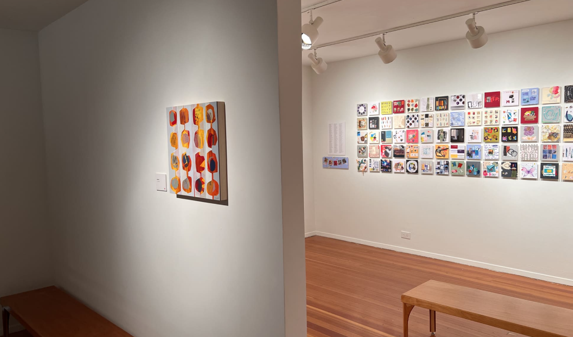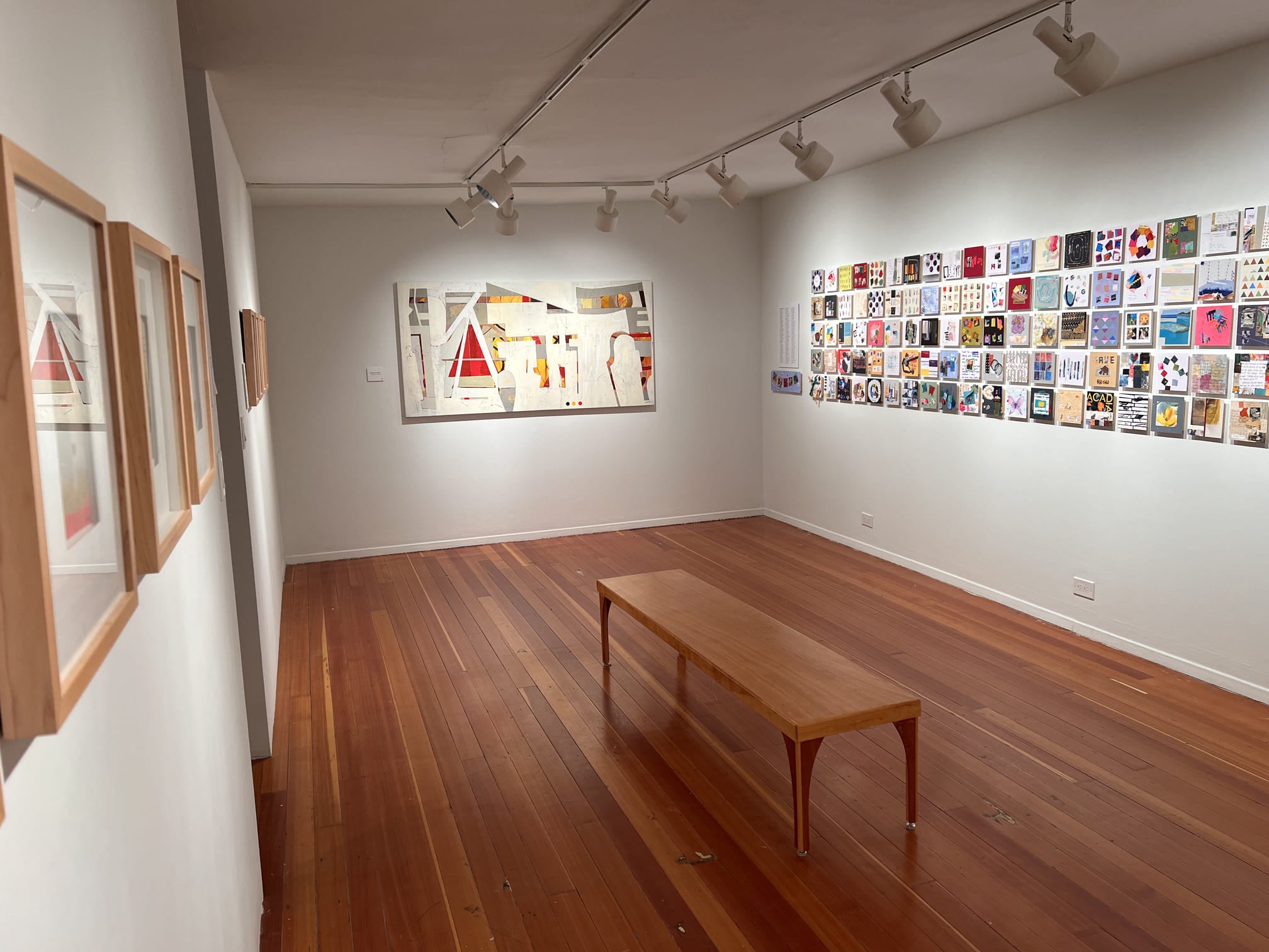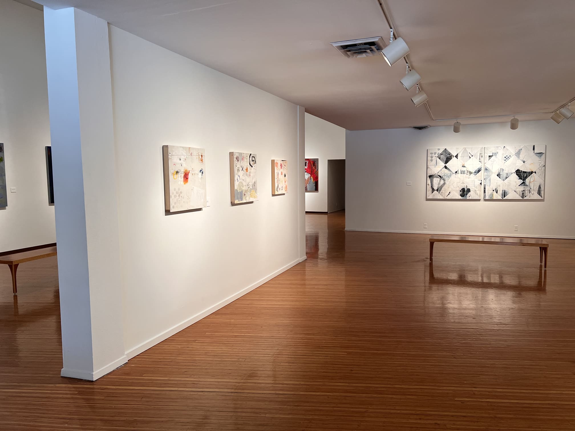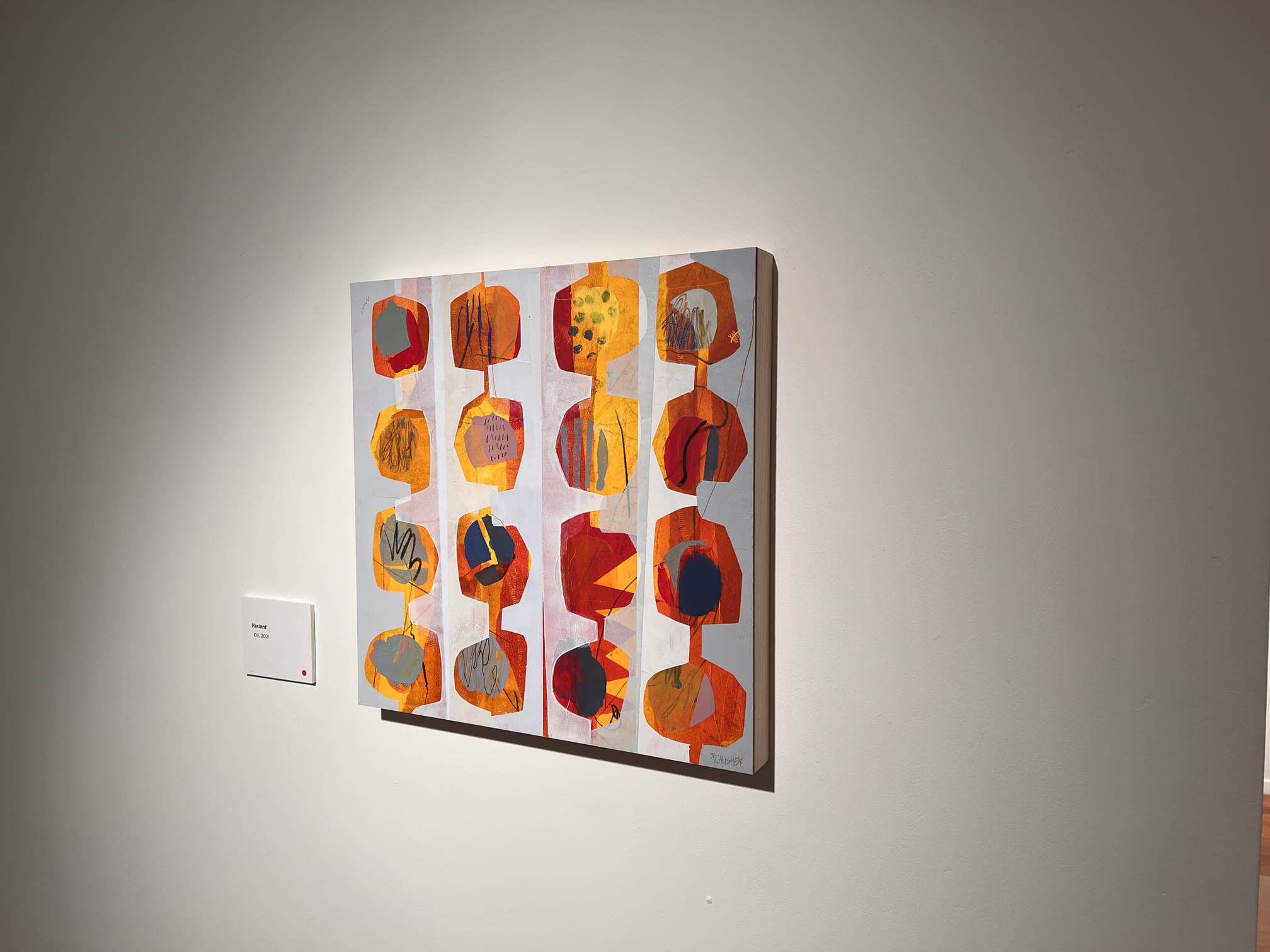 After attending an oil painting workshop in Mineral Point, Wisconsin as a student, I was asked to return as an instructor. Teaching there motivated me to hone my creative skills. Pandemic challenges and necessities further inspired my online teaching platform. I now have students from around the world, and created the Snail Mail Project to engage these global artists in my Pro membership group. I asked my students to send me color swatches through the postal service. Each envelope and its contents led to more than 150 collaborative works of art, many of which are on display in this show.